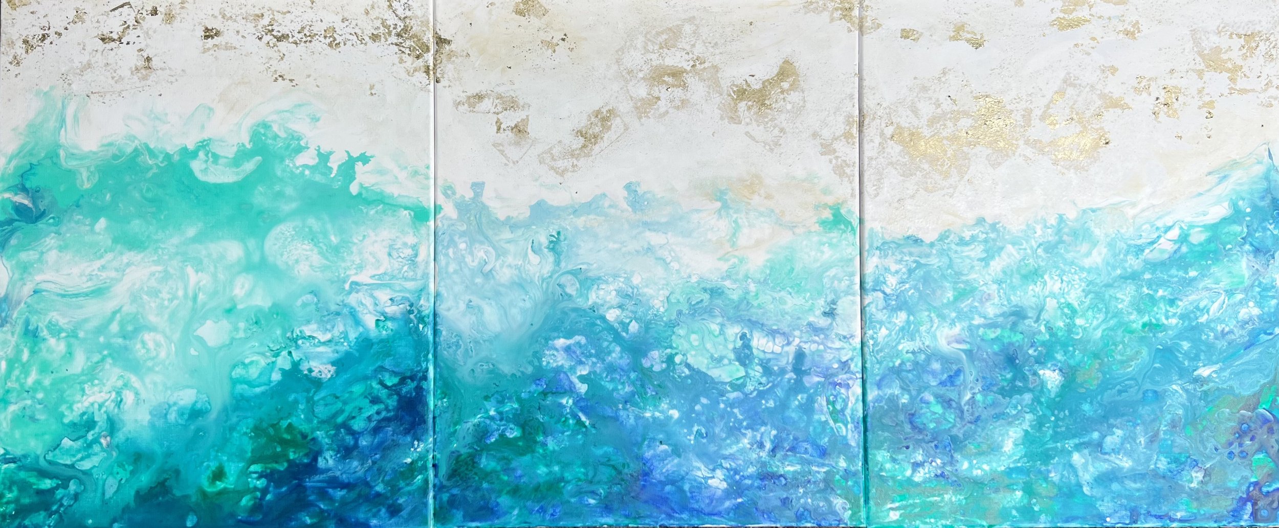 Flow es un tríptico concebido como una única obra continua. Las tres piezas funcionan de manera inseparable, generando un ritmo visual que remite al movimiento constante del agua y a la idea de fluidez como estado.